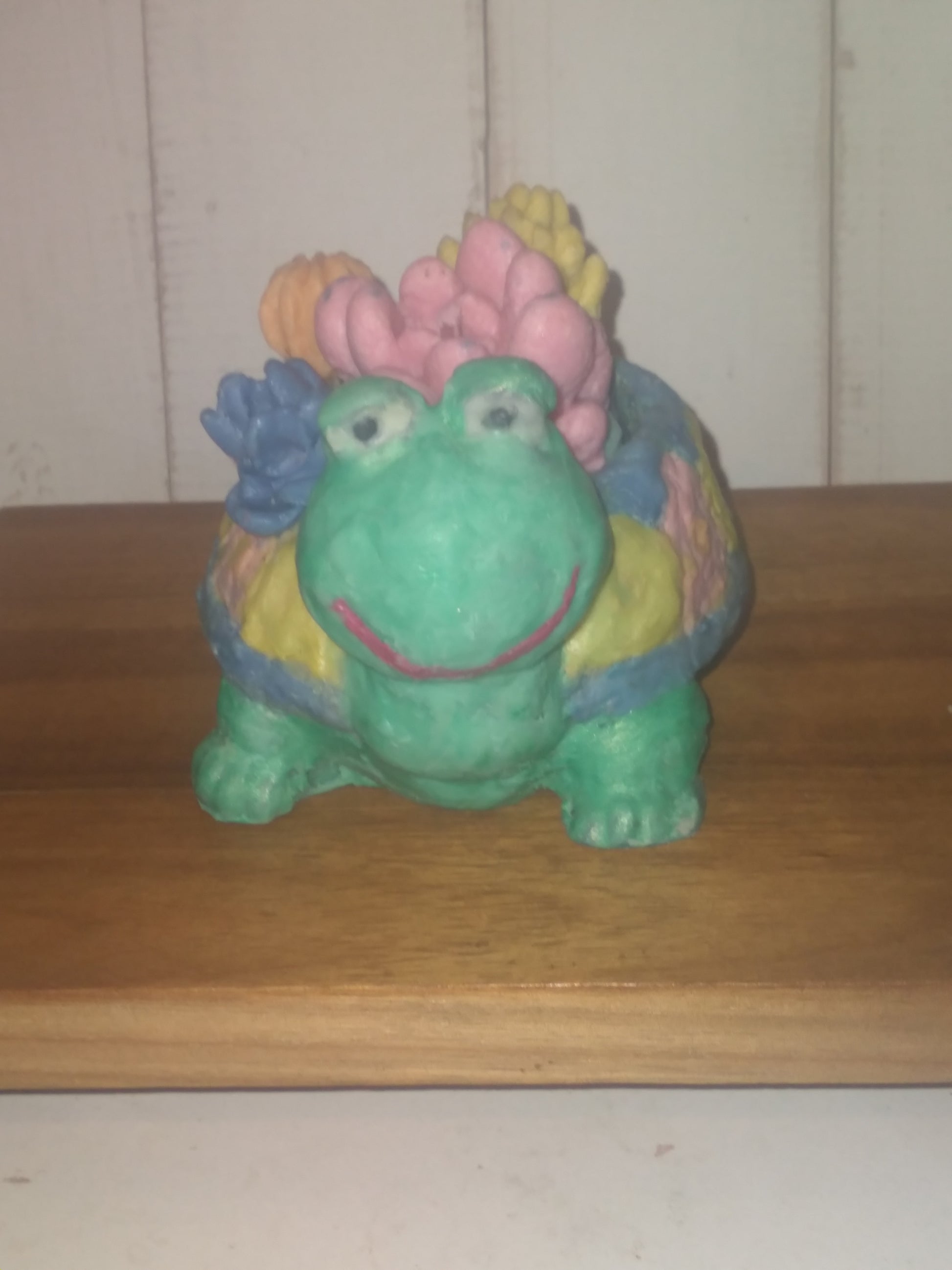 Add a splash of charm to your sink or shelf with our Succulent Shell Turtle — a handcrafted soap sculpture that blends playful design with botanical beauty. This gentle green turtle carries a pastel shell adorned with blooming succulent-style petals in soft pinks, yellows, and corals.